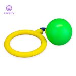 بازی رقص پا برای کودکان با حلقه و توپ پلاستیکی، در سه رنگ سبز، نارنجی و صورتی، مناسب برای تحرک و سرگرمی در فضای باز و داخل خانه.