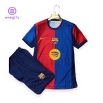 پیراهن و شورت بارسلونا، فلامنت درجه یک با طرح آبی و قرمز، در سایزهای پسرانه و مردانه. جهت اطلاع از موجودی تماس بگیرید.